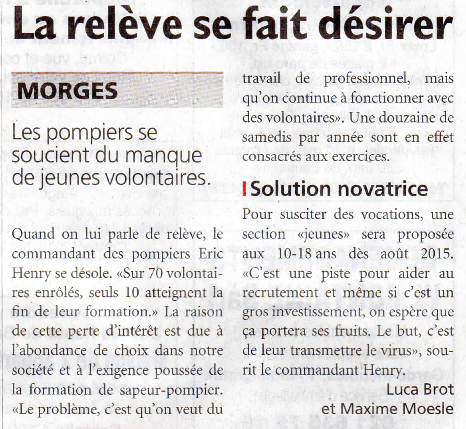 Paru dans la presse Journal de Morges – La relève se fait désirer 17 octobre 2014 La relève se fait désirer