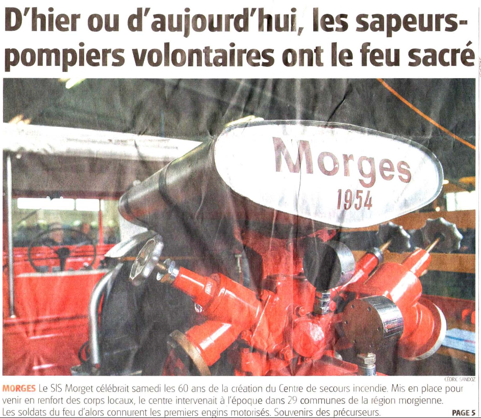 Paru dans la presse Quotidien La Côte – 60 ans du centre de secours 17 novembre 2014 D’hier ou d’aujourd’hui, les sapeurs-pompiers volontaires ont le feu sacré