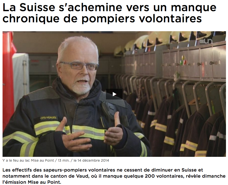 RTS – La Suisse s’achemine vers un manque chronique de pompiers volontaires