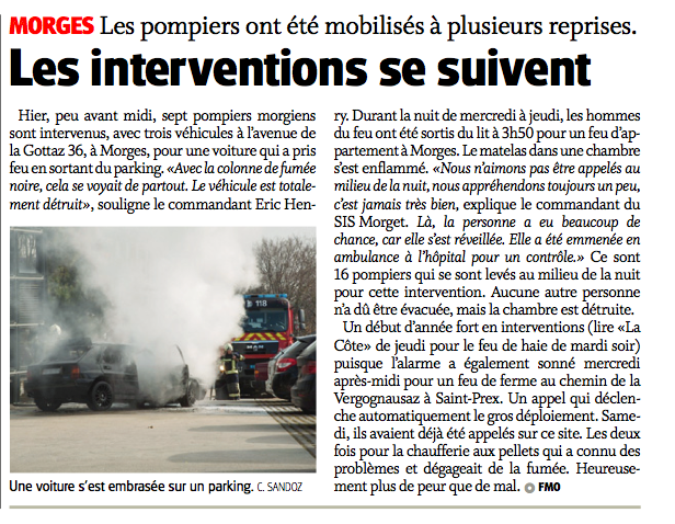 Paru dans la presse Quotidien La Côte – Les interventions se suivent 20 février 2015 Les interventions se suivent