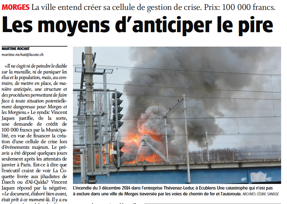 Paru dans la presse Quotidien La Côte – Les moyens d’anticiper le pire 5 mars 2015 Les moyens d’anticiper les pire